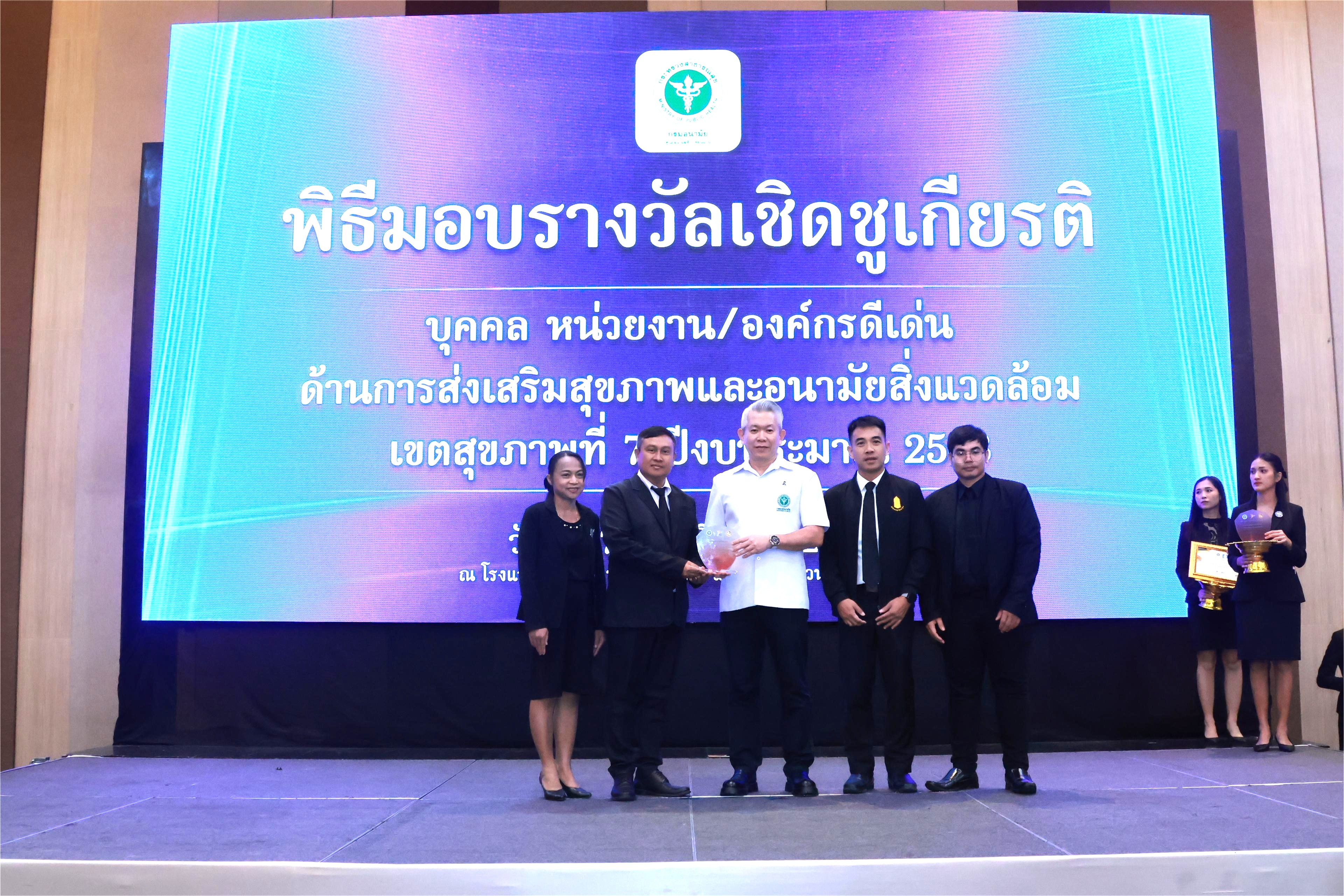 นายณรงคฺ์ฤทธิ์ เลิศอาวุธ นักวิชาการสาธารณสุข เข้าร่วมพิธีเชิดชูเกียรติและรับมอบโล่รางวัล เมืองสุขภาพดีระดับทองแดง ประจำปี 2568