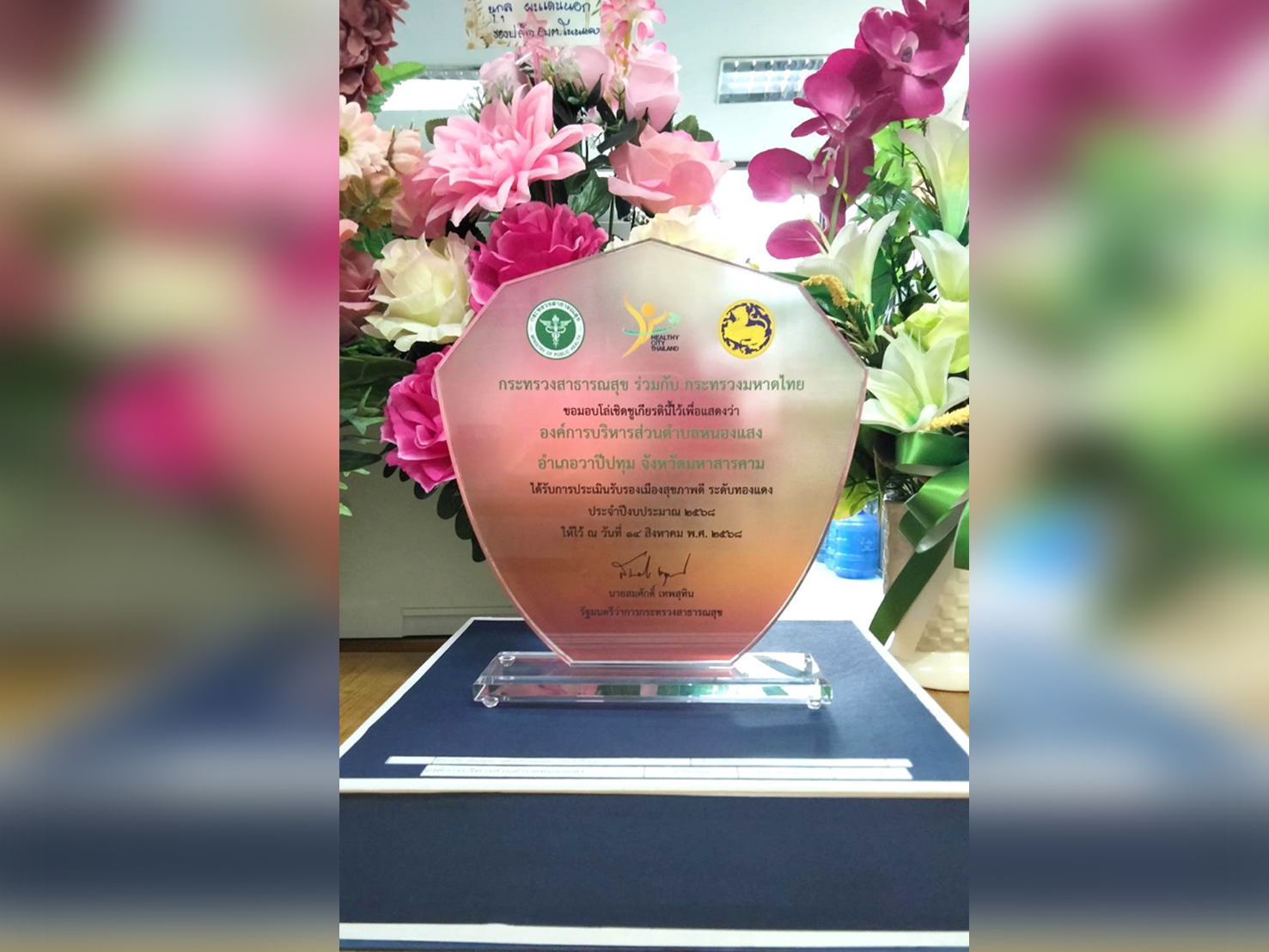 นายณรงคฺ์ฤทธิ์ เลิศอาวุธ นักวิชาการสาธารณสุข เข้าร่วมพิธีเชิดชูเกียรติและรับมอบโล่รางวัล เมืองสุขภาพดีระดับทองแดง ประจำปี 2568