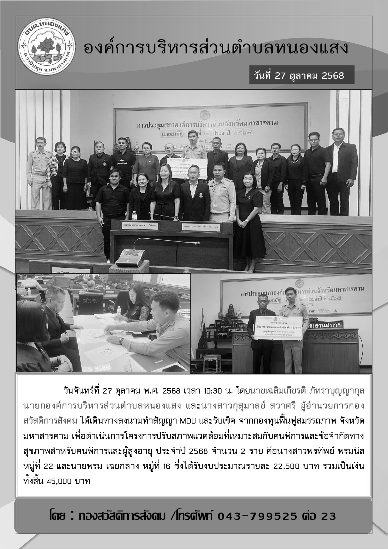 บัญชีรายชื่อผู้มีสิทธิรับเงินเบี้ยยังชีพคนพิการขององค์การบริหารส่วนตำบลหนองแสง ประจำปีงบประมาณ พ.ศ.2568