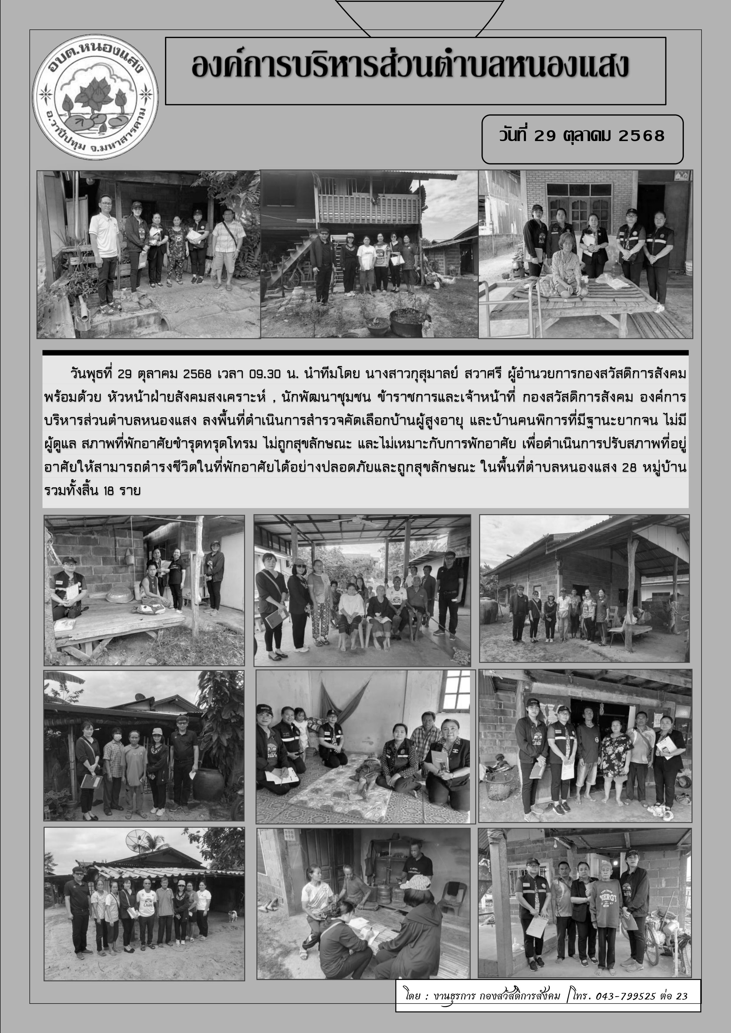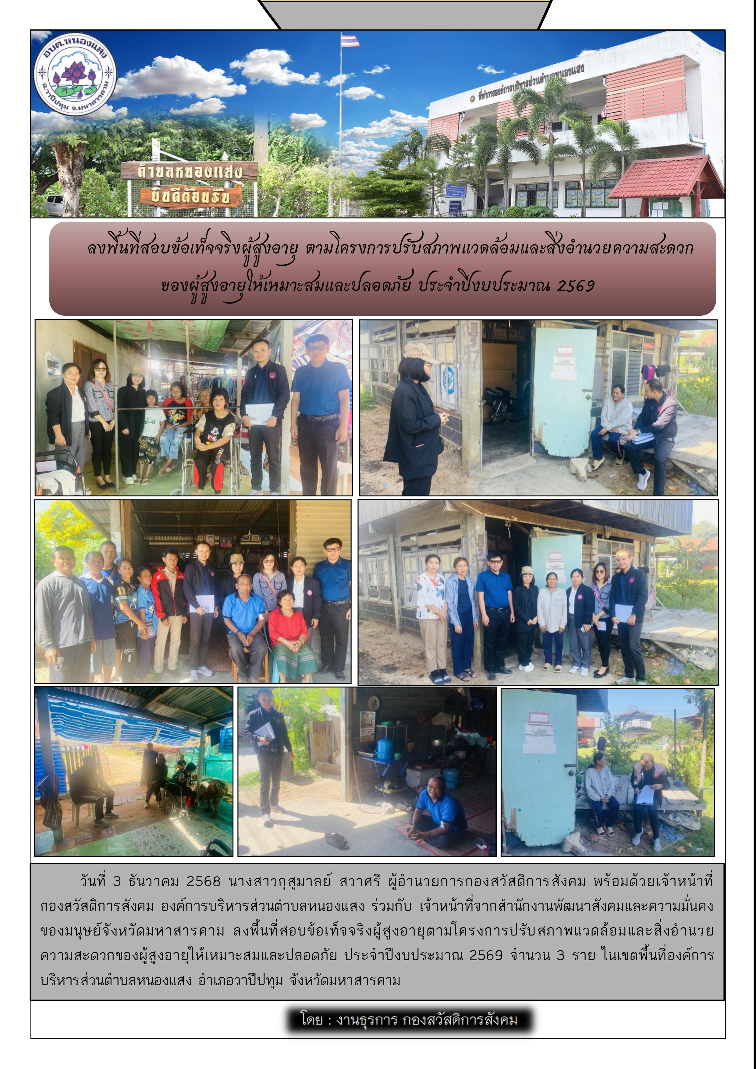 กองสวัสดิการสังคม อบต.หนองแสง ลงพื้นที่โครงการปรับสภาพแวดล้อมและสิ่งอำนวยความสะดวก ผู้สูงอายุ ประจำปี 2569
