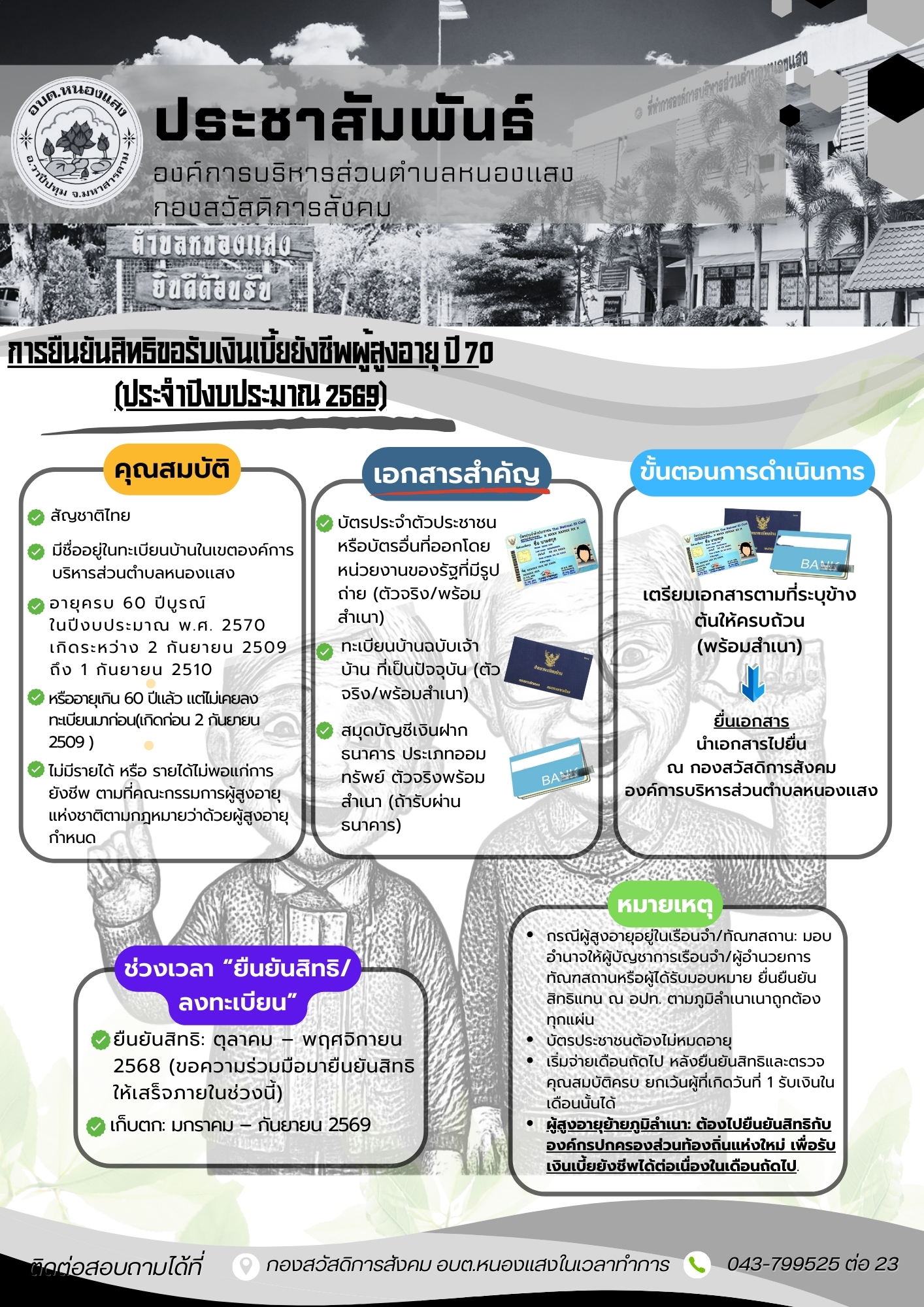 การยืนยันสิทธิขอรับเงินเบี้ยยังชีพผู้สูงอายุ ปี 70 ประจำปีงบประมาณ 2569