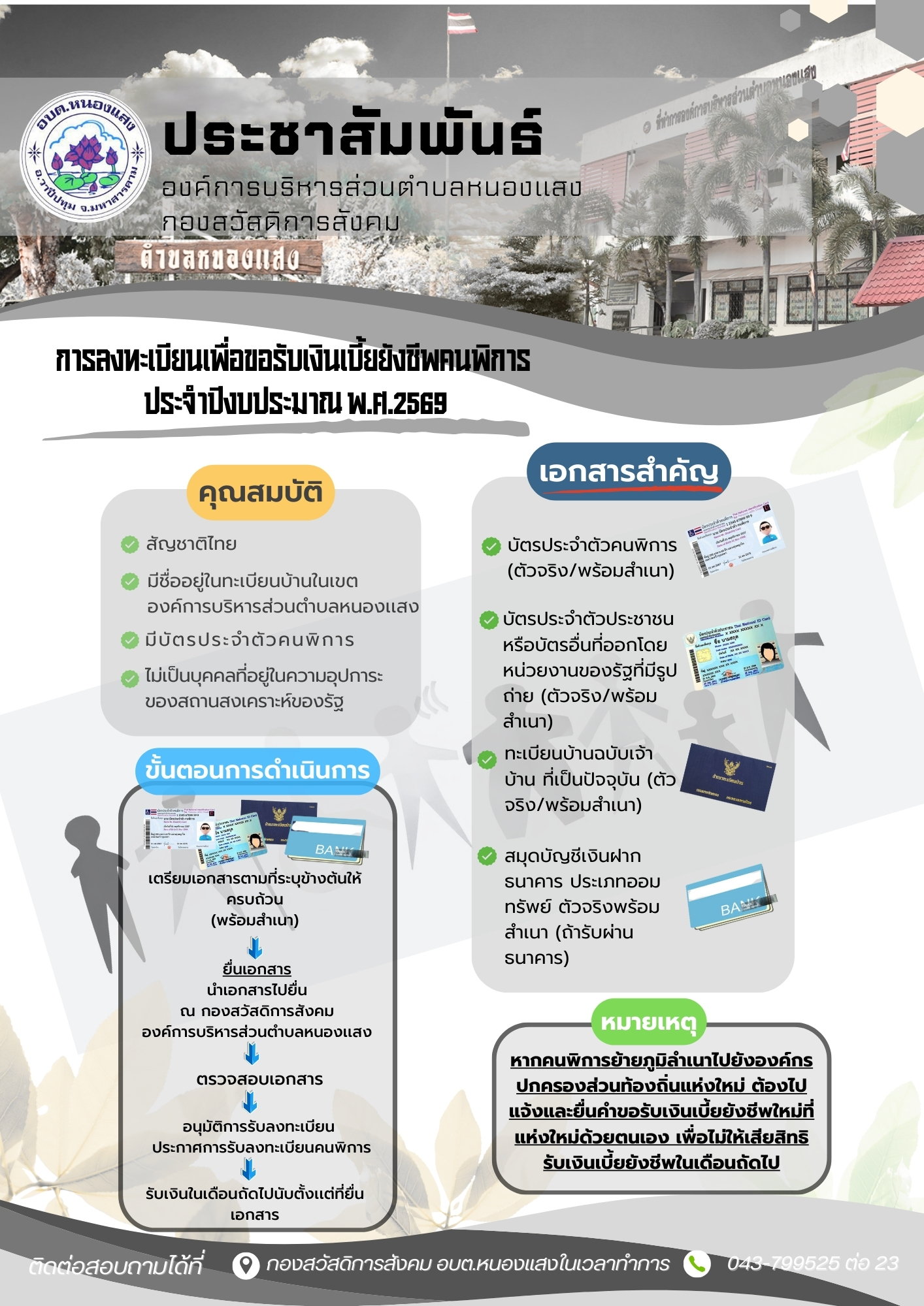 การลงทะเบียนเพื่อขอรับเงินเบี้ยยังชีพคนพิการ ประจำปีงบประมาณ 2569