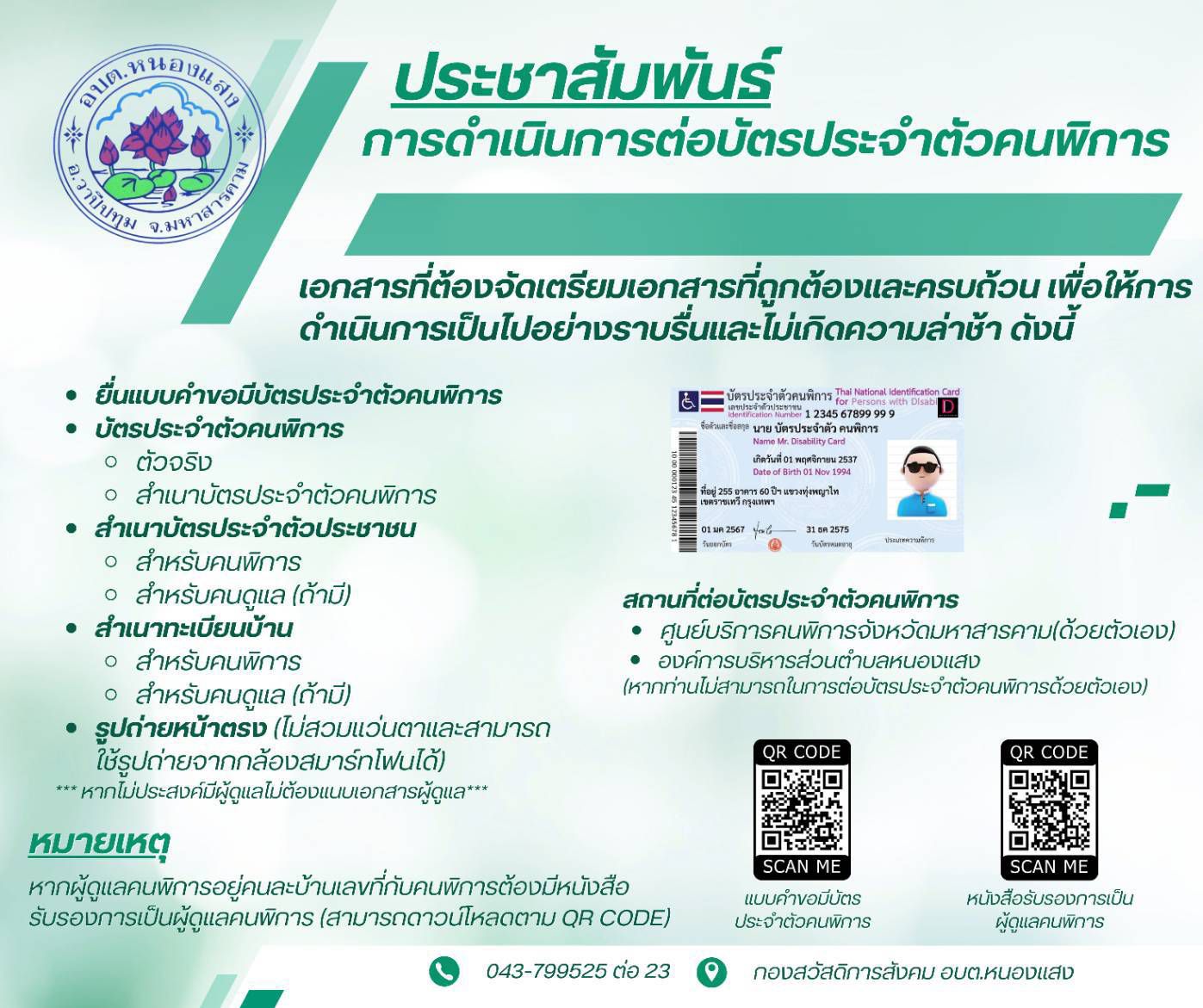 ประชาสัมพันธ์ การดำเนินการต่อบัตรประจำตัวคนพิการ