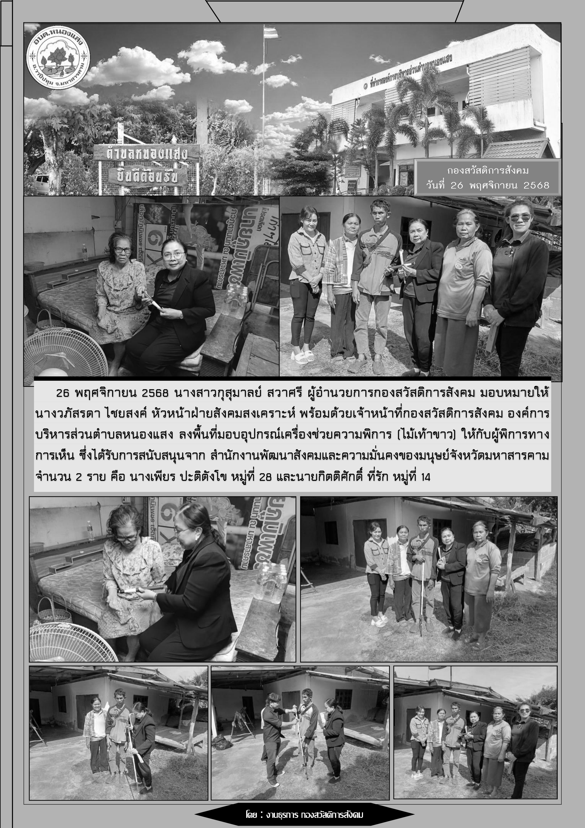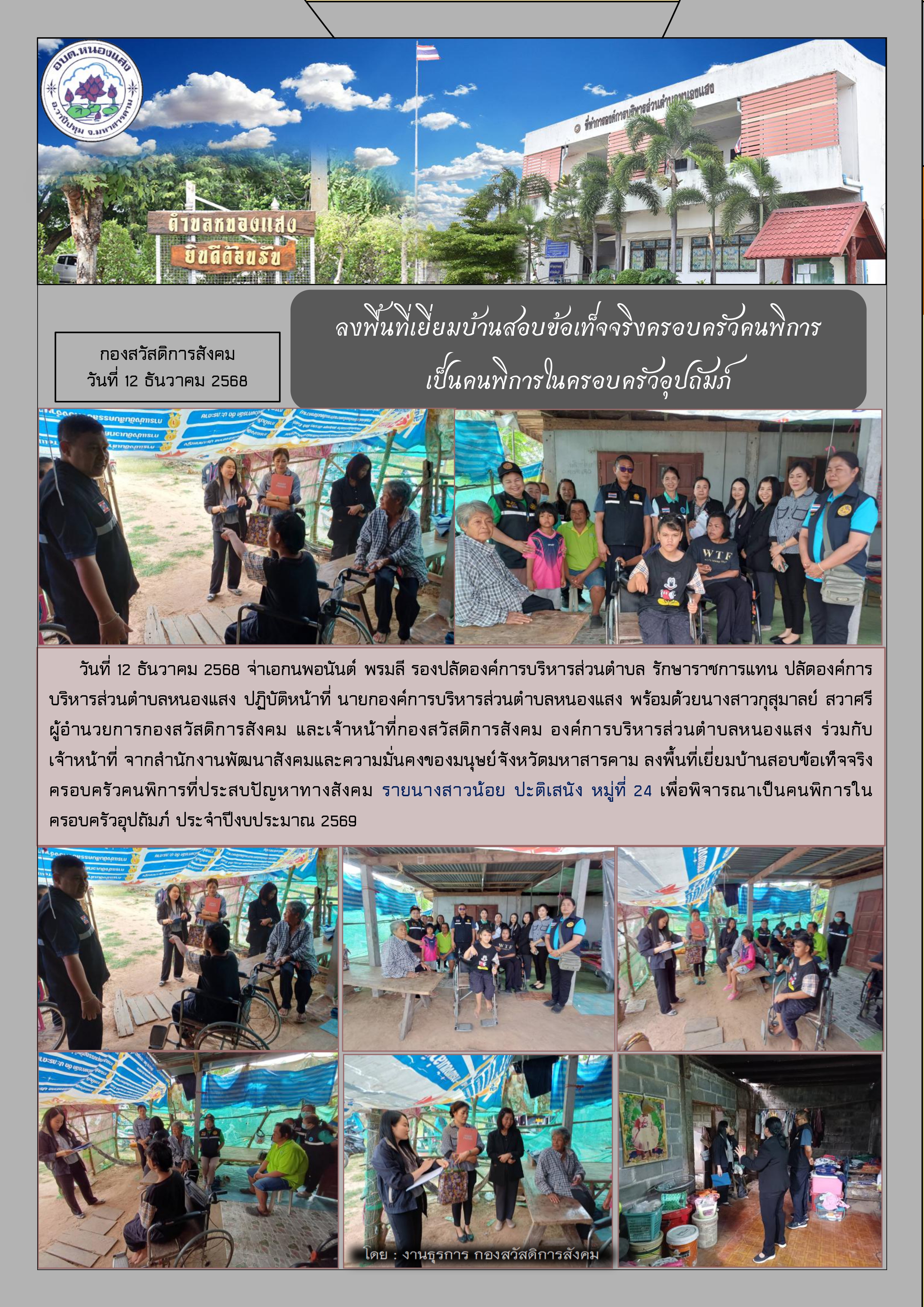 กองสวัสดิการสังคม อบต.หนองแสง และสำนักงานพัฒนาสังคมและความมั่นคงของมนุษย์จังหวัดมหาสารคาม ลงพื้นที่เยี่ยมผู้พิการในครอบครัวอุปถัมถ์